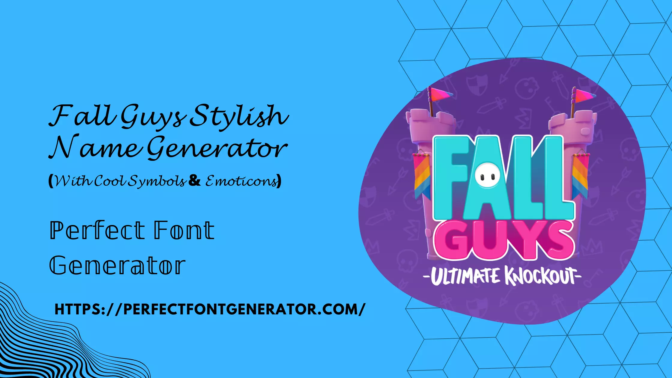 Fall Guys: Ultimate Knockout is a platform battle royale game developed by Mediatonic and published by Devolver Digital. You can play it on Microsoft Windows, PlayStation 4, Nintendo Switch, Xbox One, Xbox Series X/S, Android, and iOS. The game was designed on the Unity engine. Fall Guys Stylish Name generator has 90+ fancy font styles for you to make your profile unique & appealing. All available stylish fancy fonts are compatible with the Fall Guys platform, so donât need to worry about how it will work or not, you just use it. We have done all the work for you. There is one advanced feature of âloading moreâ fancy fonts in the bottom that will generate more Fall Guys fancy fonts for you.